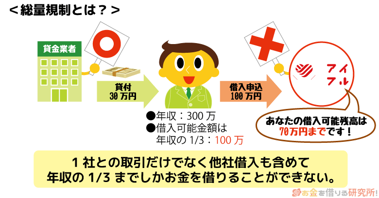 アイフルなどの消費者金融は総量規制というルールが適用されるため、年収の3分の1超を融資することは法律上できません。