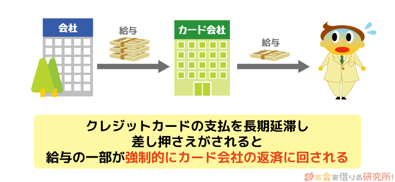一方、分割払いの交渉が上手くいかず、給与の差し押さえが認められた場合は毎月の給与の一部が強制的にクレジットカードの返済に回されることになります。