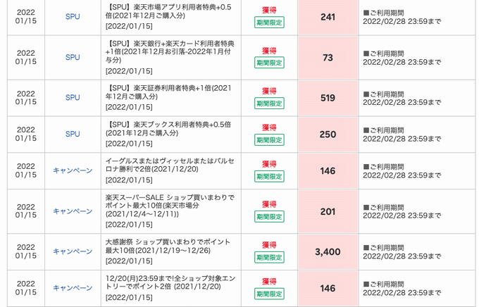 | 2021年11月 | 楽天ビューティのポイント倍率が+1倍から+0.5倍にダウン |