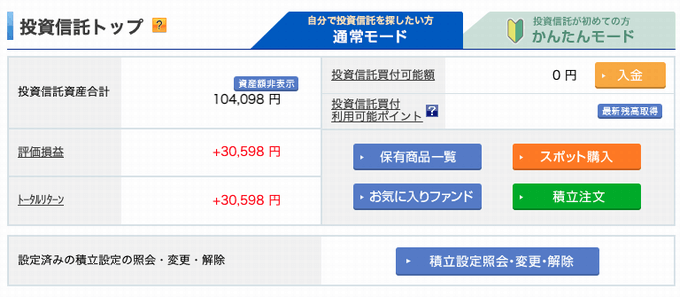 投資信託の購入はポイントだけですが、毎月コツコツと続けるとそれなりの金額になります。